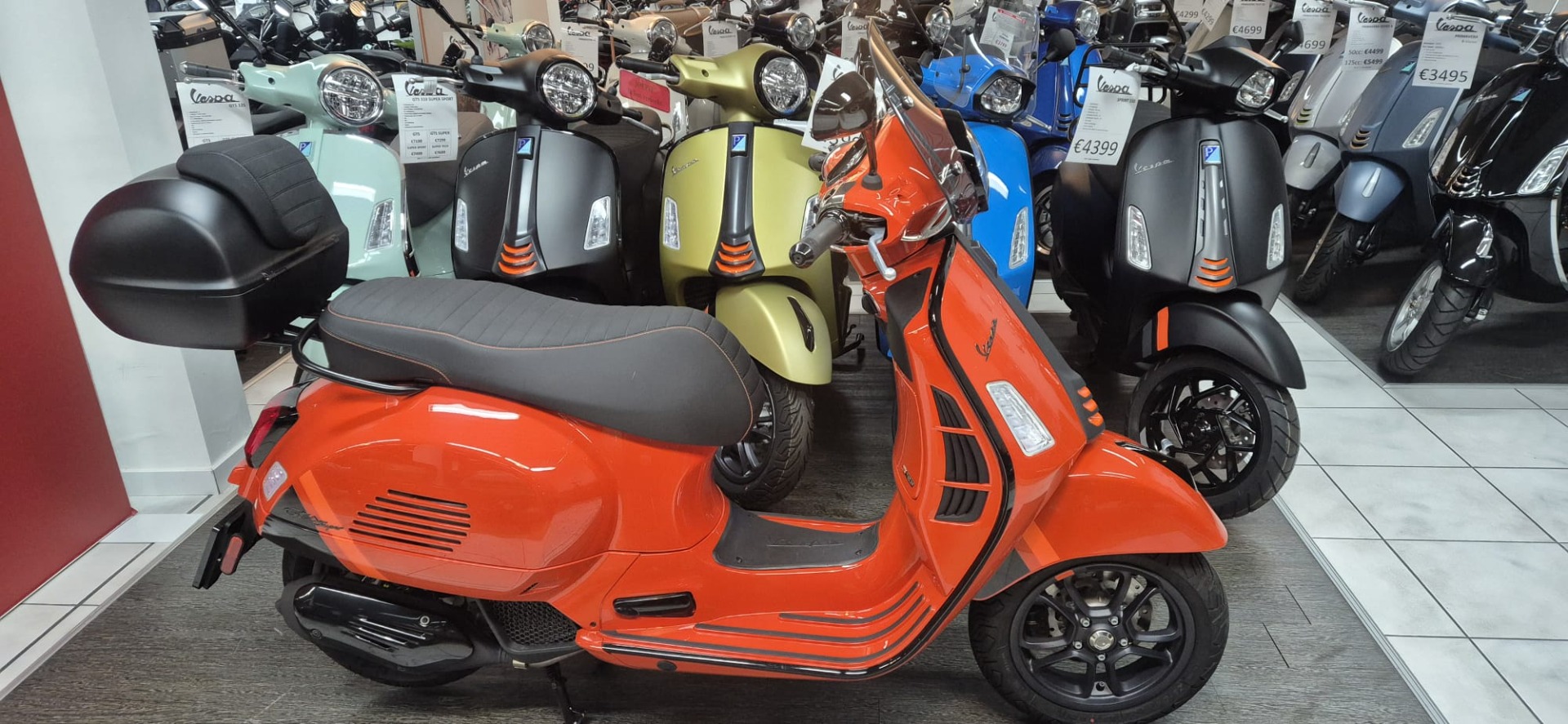 Vespa GTS125 SuperSport in de zeldzame oranje kleur