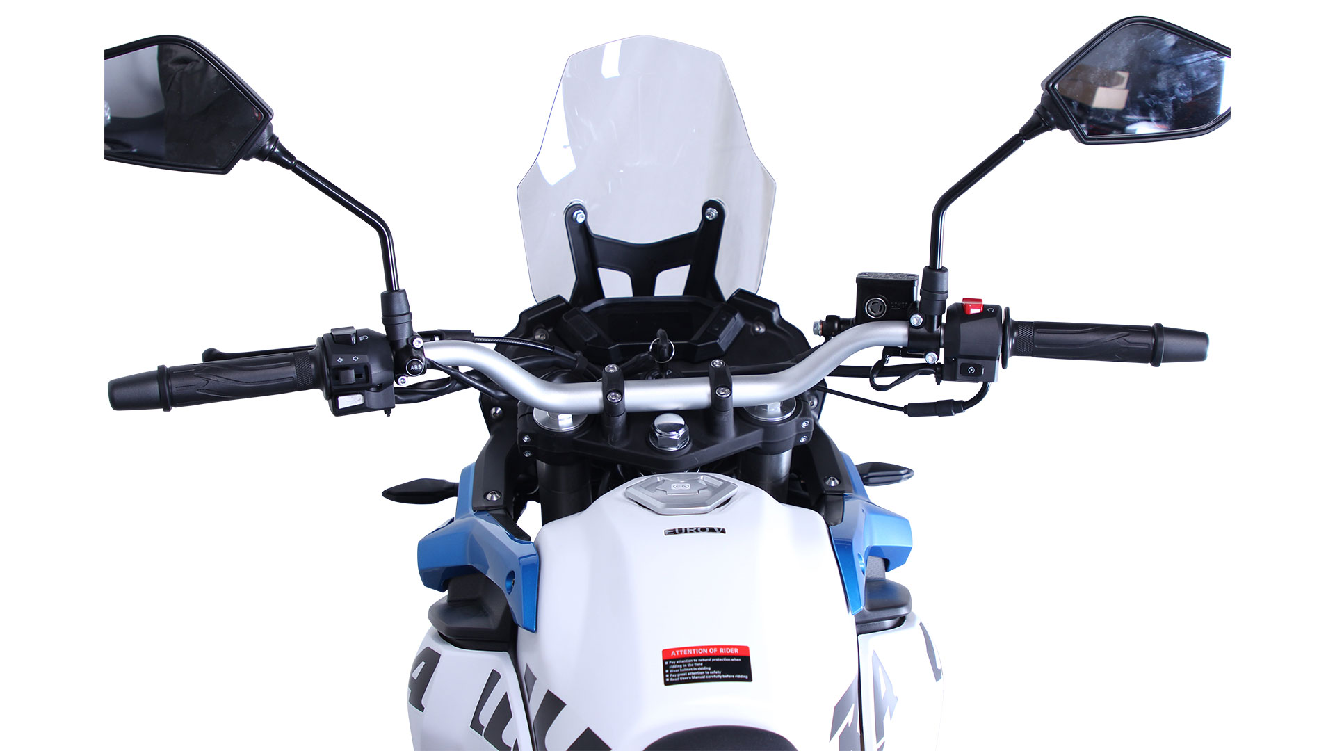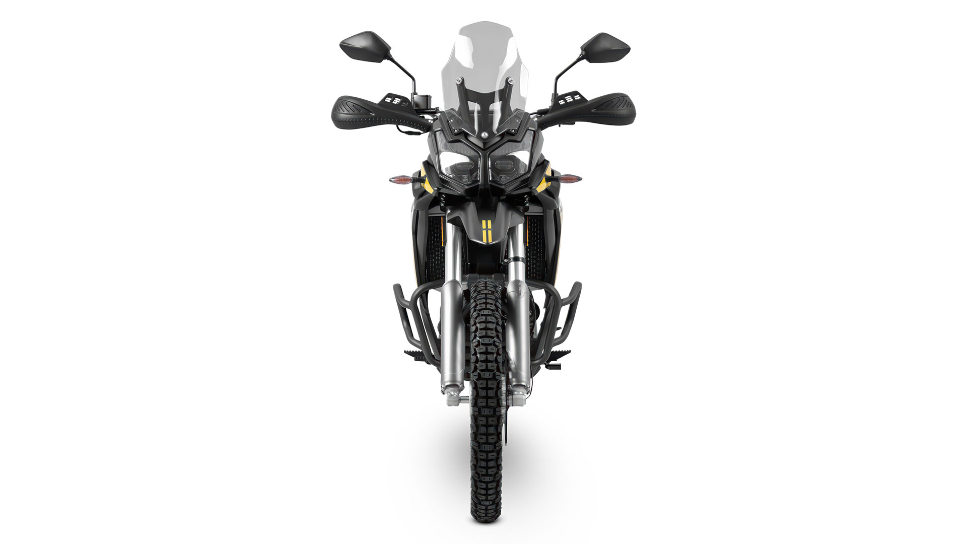 De motor staat op een robuust stalen buizenframe, dat bestand is tegen zware omstandigheden op zowel gravel als asfalt. De vering bestaat uit een 41 mm upside-down voorvork met een veerweg van 240 mm, en een achterste mono-schokdemper met instelbare veervoorspanning, eveneens met 240 mm veerweg, wat zorgt voor een stabiele en comfortabele rit op oneffen terrein.