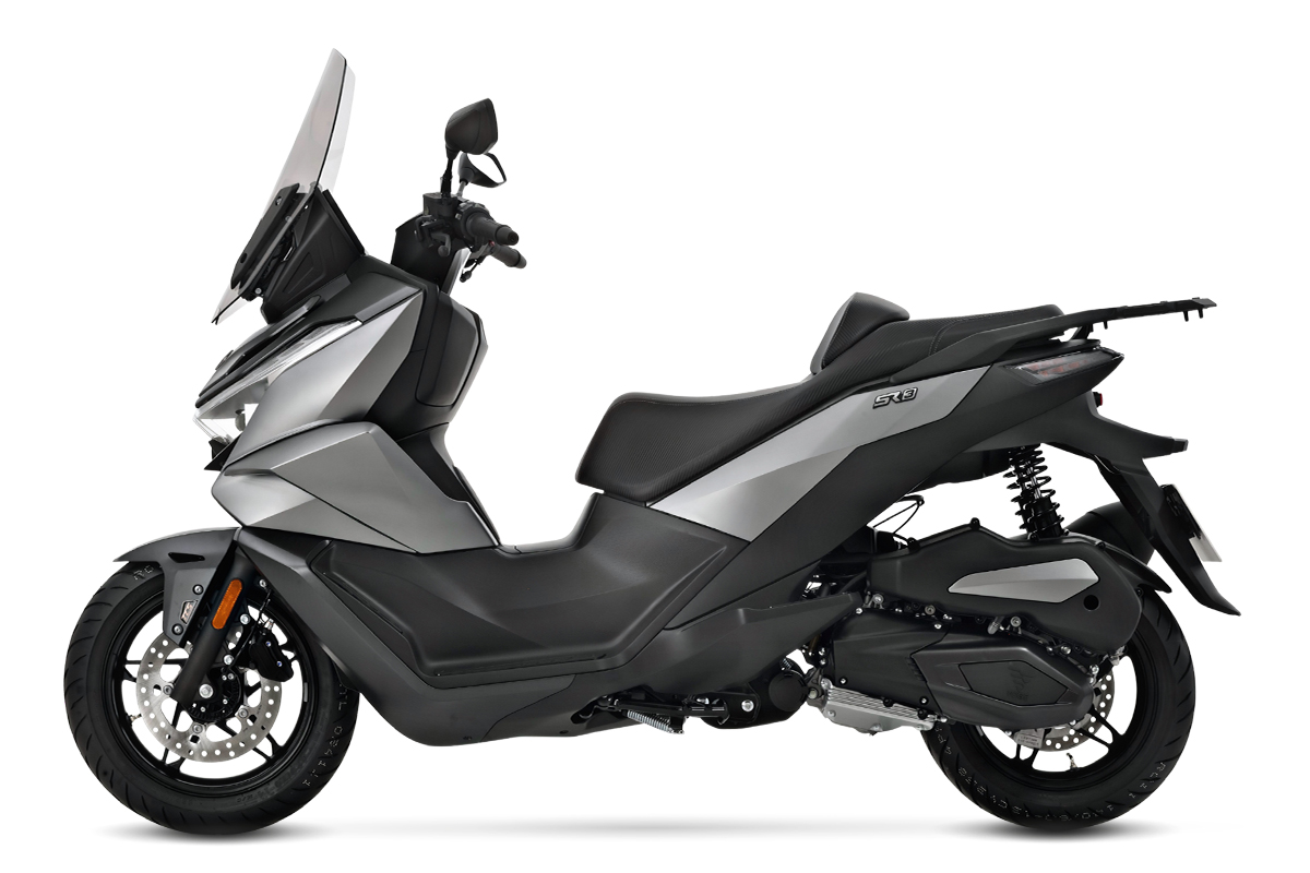 De 14- en 13-inch velgen, een wielbasis van 1.525 mm en een lage zadelhoogte van 770 mm zorgen voor stabiliteit, ruimte en toegankelijkheid. Daarnaast is de SR3 standaard uitgerust met een verstelbaar windscherm, verwarmde handvatten en veiligheidsvoorzieningen zoals TCS-tractiecontrole, schijfremmen met dubbelkanaals ABS, ESS-noodremwaarschuwing en een volledige LED-verlichtingsinstallatie. Verder beschikt hij over een brandstoftank van 14 liter voor een groot bereik, een achterste bagagedrager, twee ruime opbergvakken (waarvan één met USB-aansluiting), een bergruimte onder het zadel met plaats voor twee helmen (één integraal en één jethelm), keyless start, een HD-frontcamera en een groot 7" TFT-scherm met Turn-by-Turn navigatie.